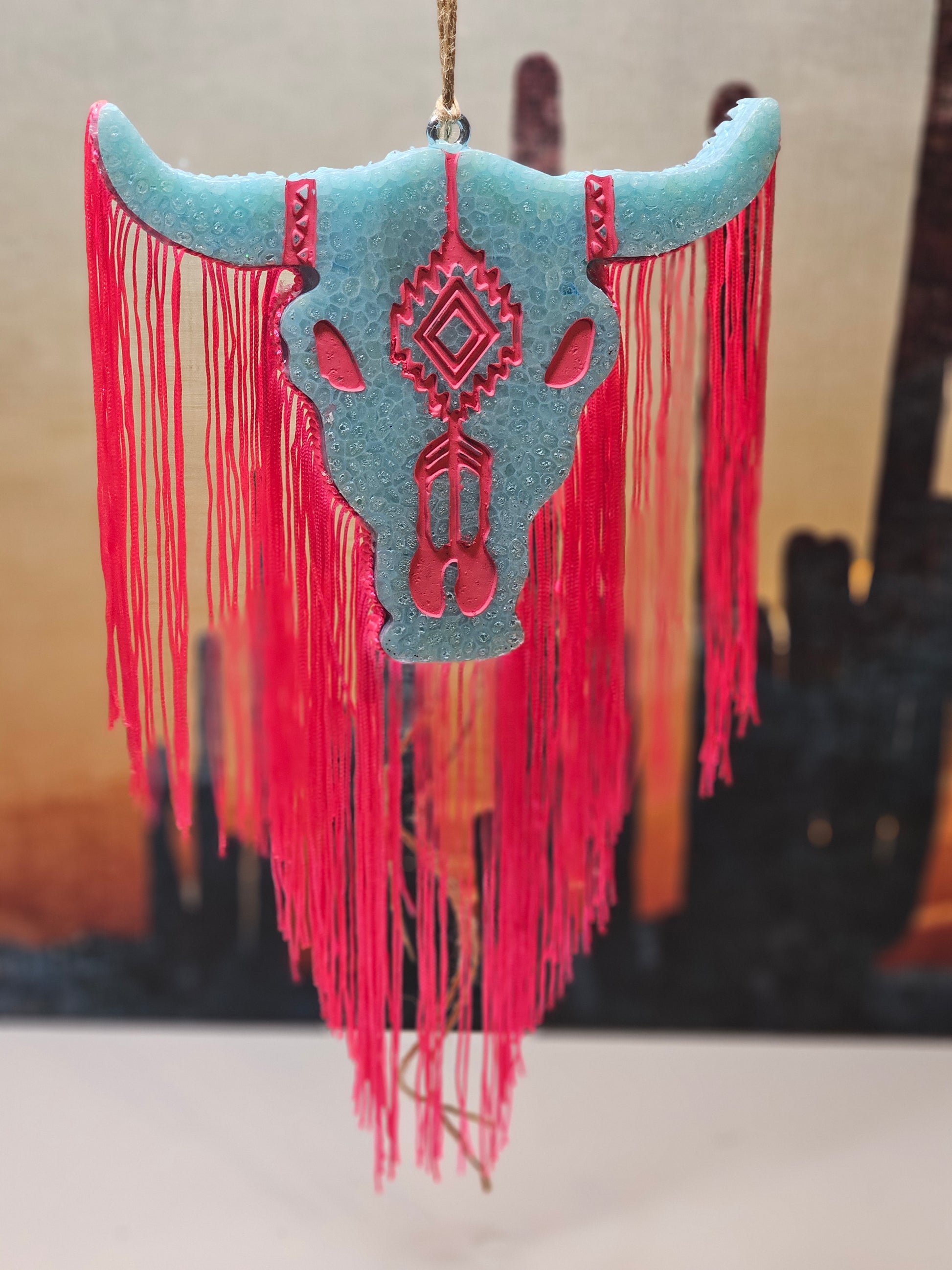 Pink and blue bull air freshener